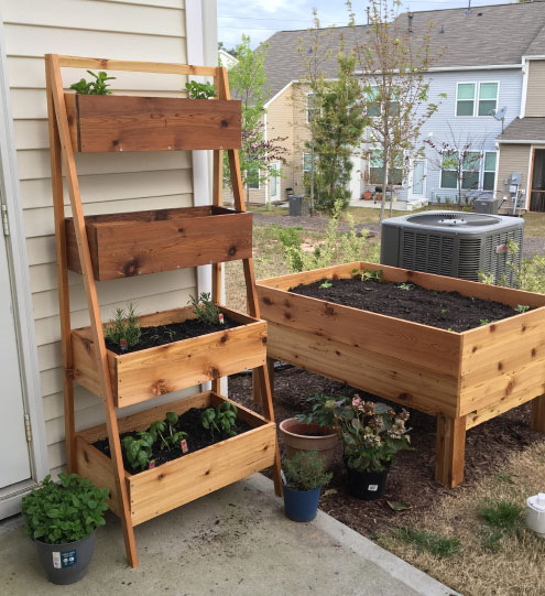 3-stöckiges Hochbeet aus Holz mit Rädern, Spalier, Stauraum auf der Rückseite, leicht beweglich für Blumen, Kräuter, natürlich