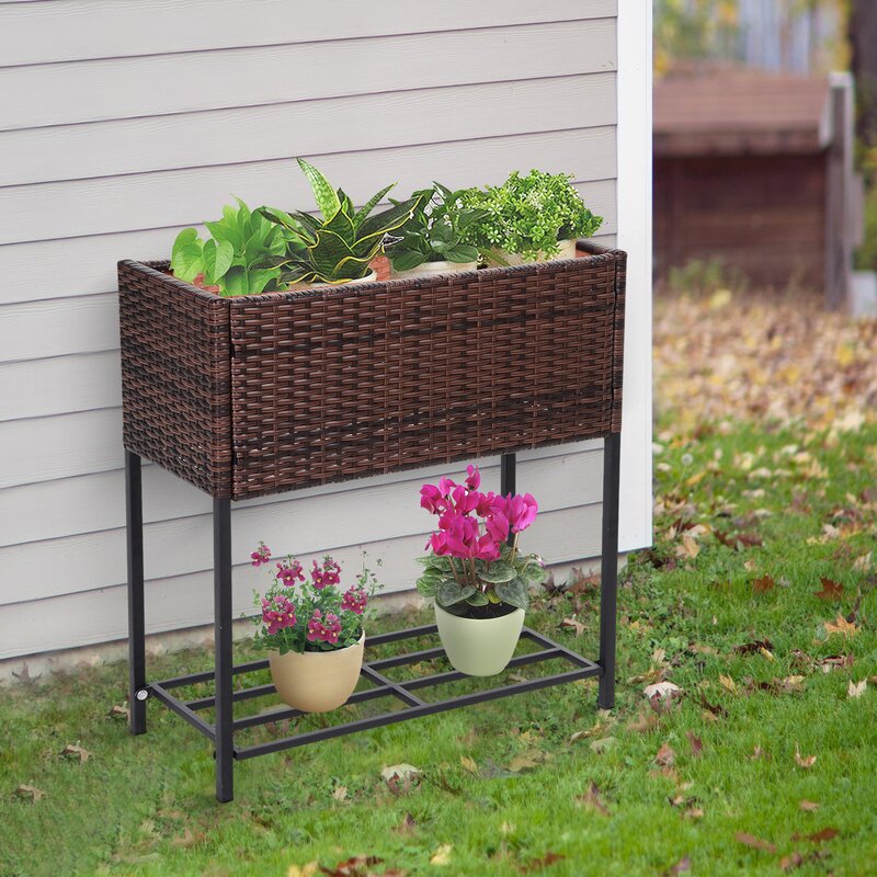 Erhöhtes Gartenbeet 48 x 24 x 32 Zoll, mobiler erhöhter Holzpflanzer mit feststellbaren Rädern, Ablagefach, Einlage